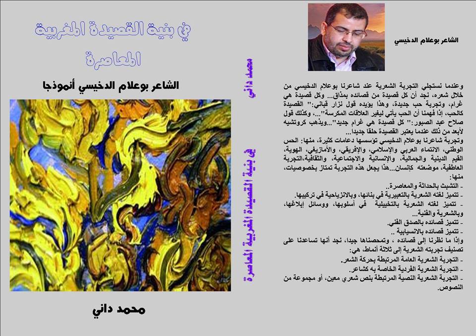 [SIZE=6]في بنية القصيدة المغربية المعاصرة الشاعر بوعلام دخيسي أنموذجا[/SIZE]، هو عنوان مشروع الكتاب النقدي الذي ينوي الناقد المفربي الدكتور محمد داني اخراجه في كتاب حول تجربة الشاعر المغربي بوعلام دخيسي