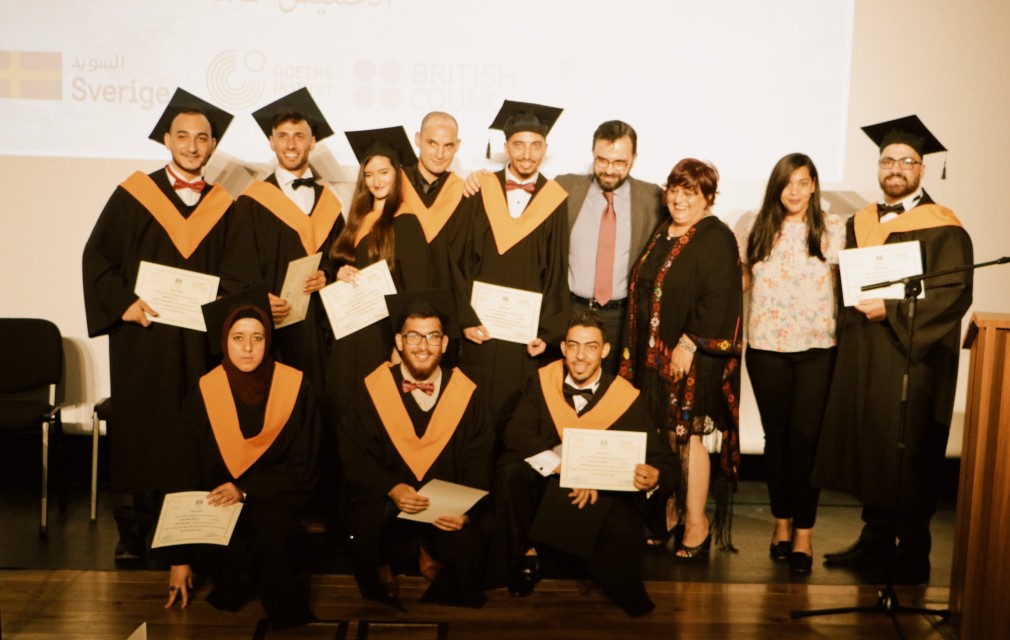 تسعة طلاب أنهوا جميع مراحل التدريب على مدار سنتين، حيث مروا في أربعة مراحل تدريبية كانت أولها مع مدربين محليين متخصصين، ثم انتقل الطلاب بعدها إلى المرحلة الثانية من التدريب العملي مع مؤسسات فلسطينية تعمل في مجالات الفنون الأدائية، أما المرحلة الثالثة فكانت عبارة عن تدريب مع مدربين دوليين، ثم خاض الطلاب تجربة إنتاج أعمال مسرحية بالعمل سوياً على مشروع تخرجهم والتي نتج عنها مسرحيتين بعنوان "إعدام أميرة" و"سما تحت الحصار".