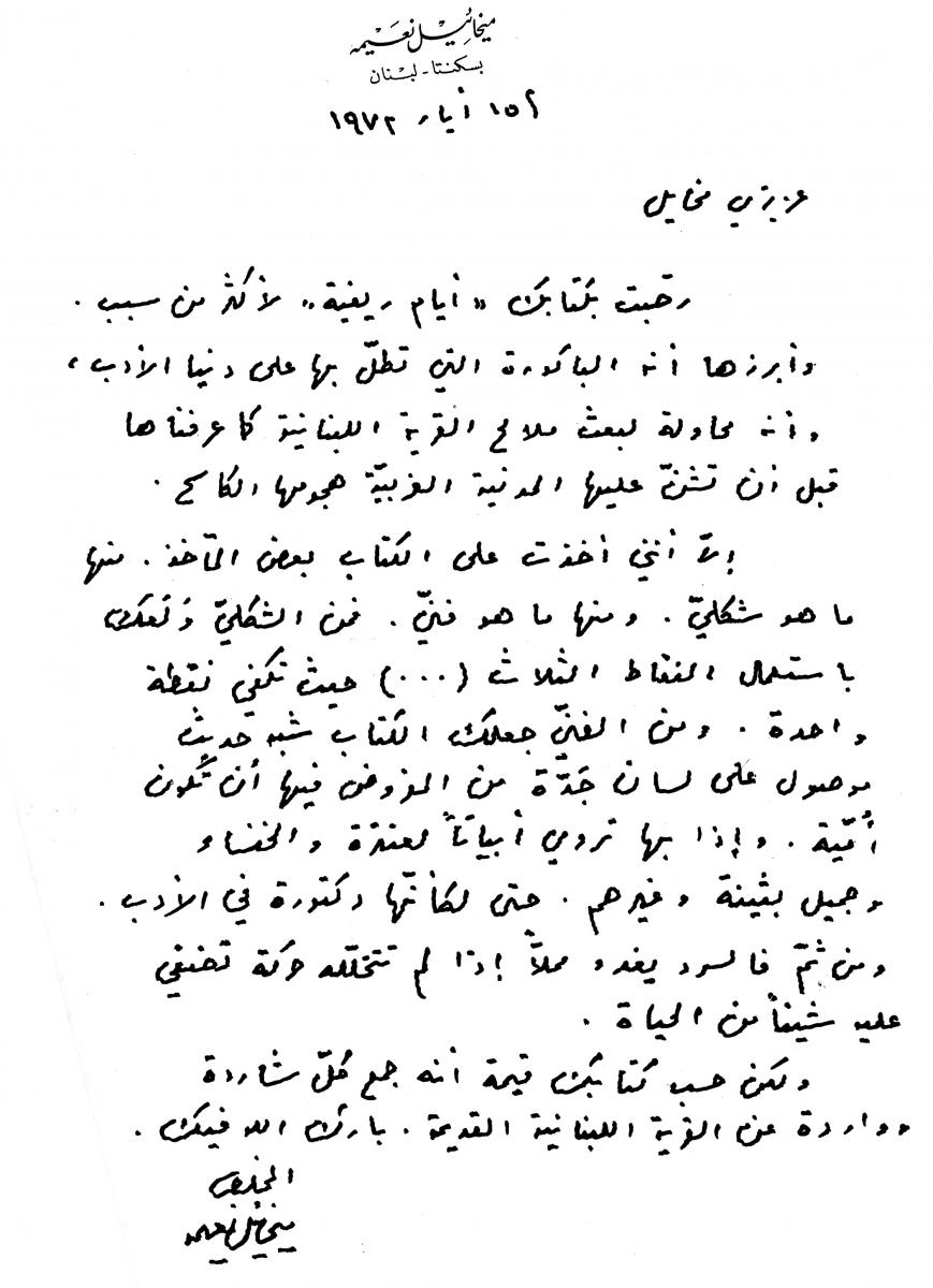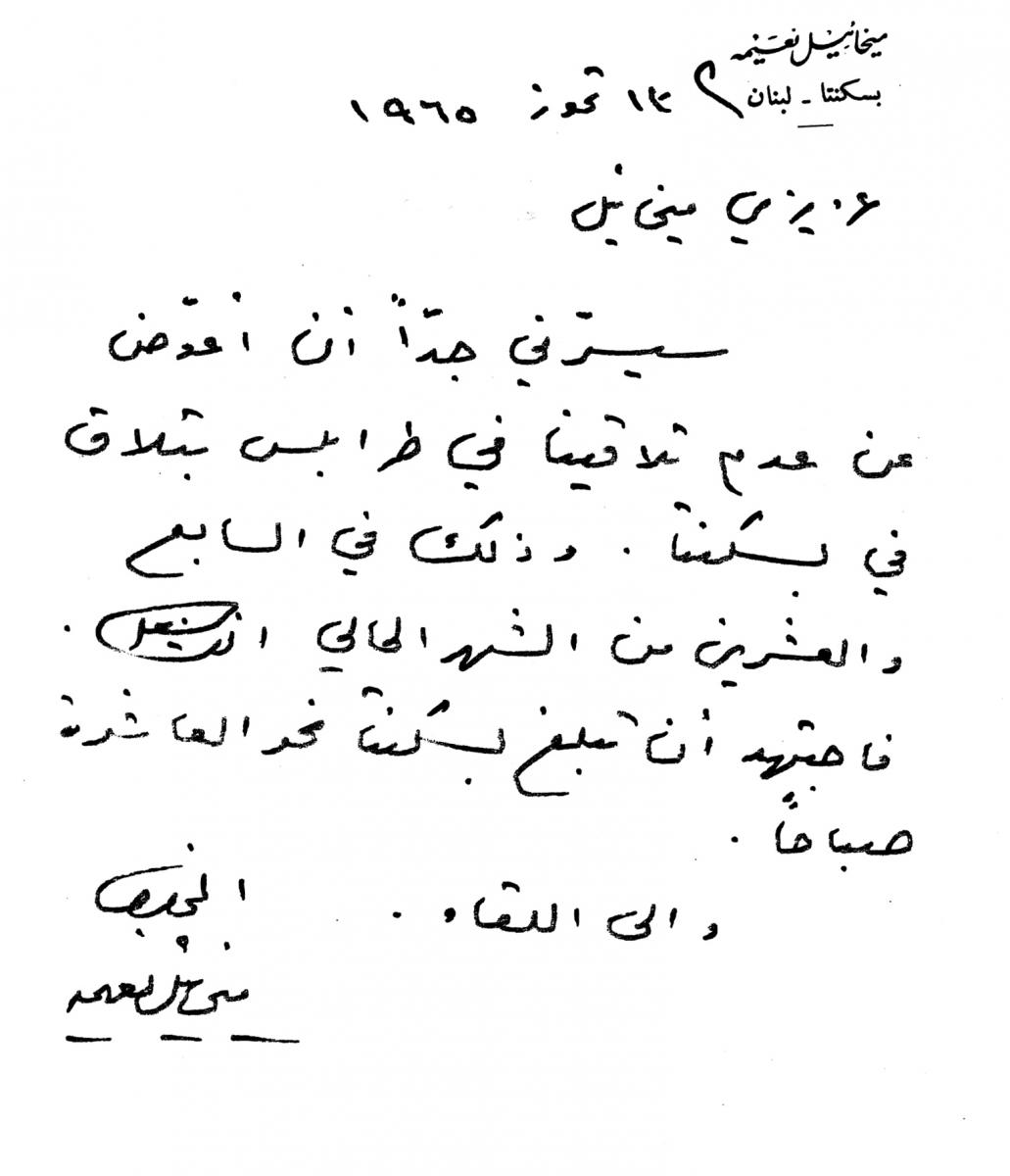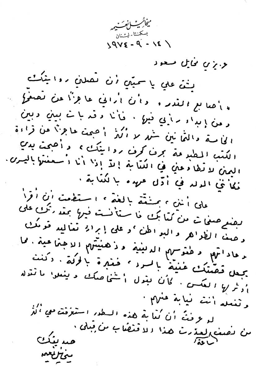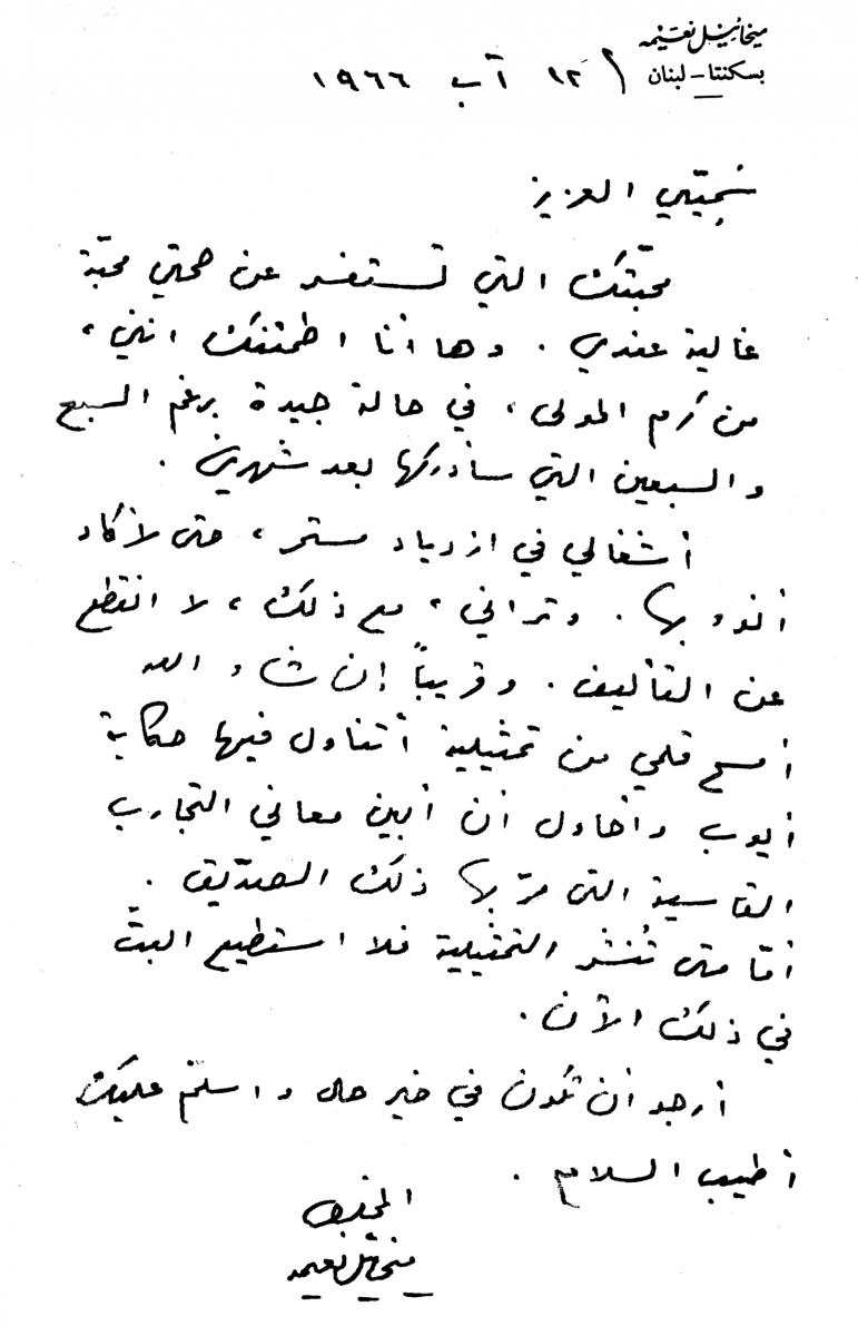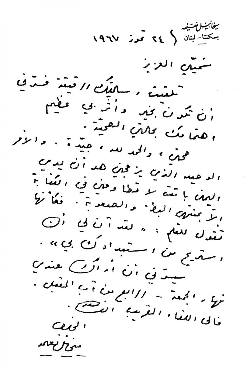 رسائل خطية من ناسك الشخروب ميخائيل نعيمة الى صديقه ميخائيل مسعود