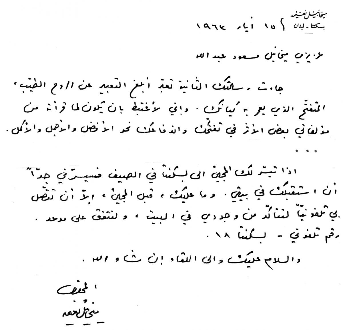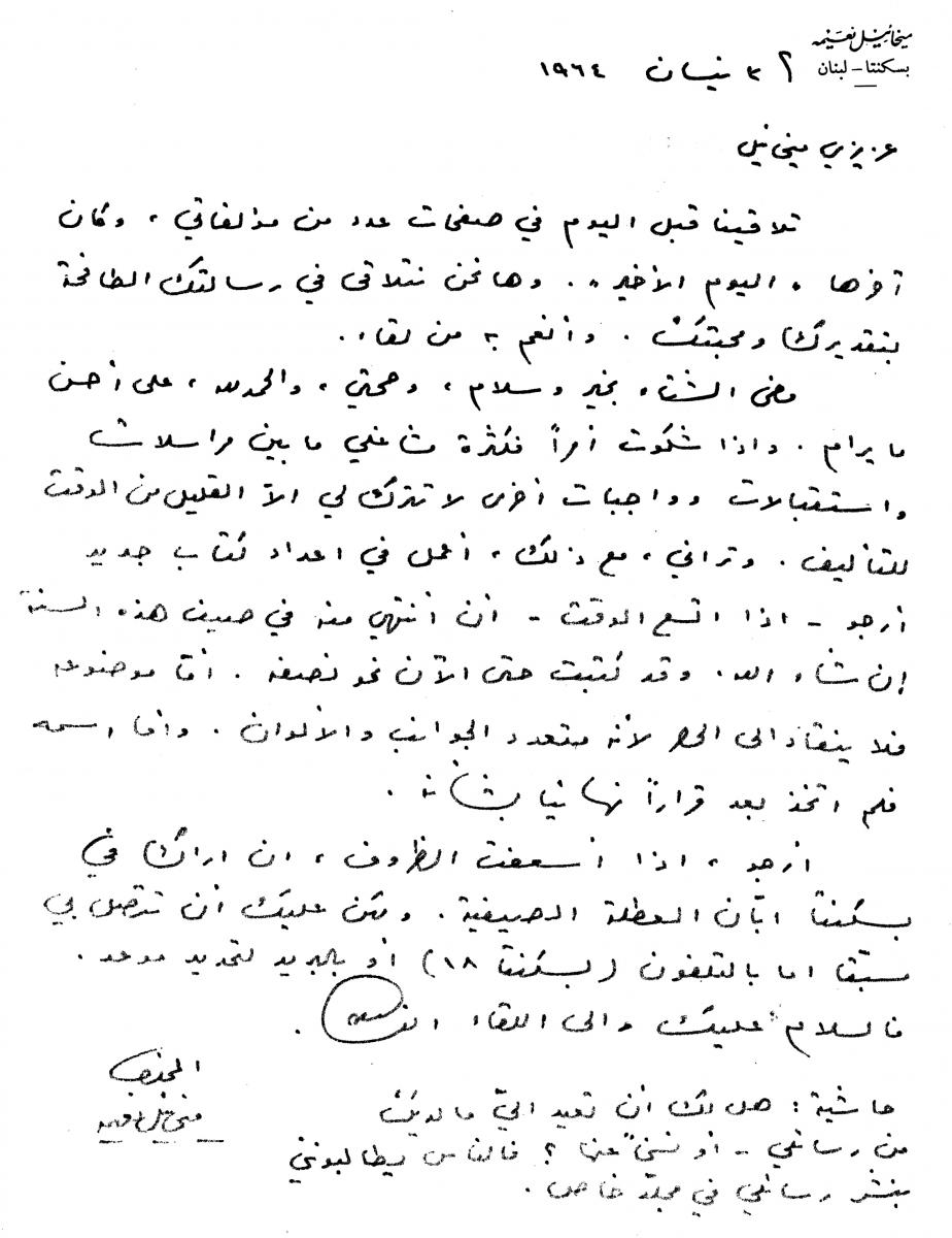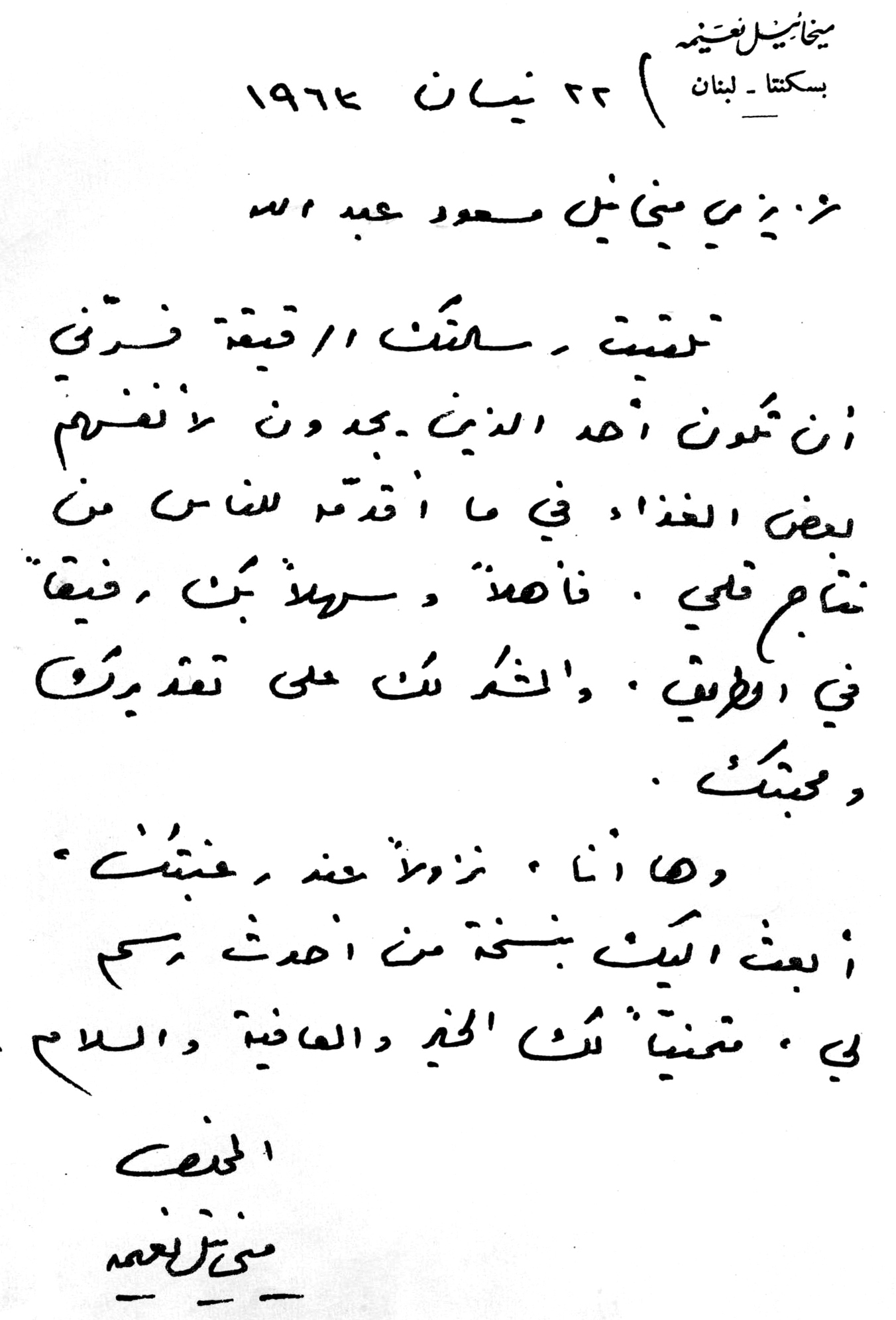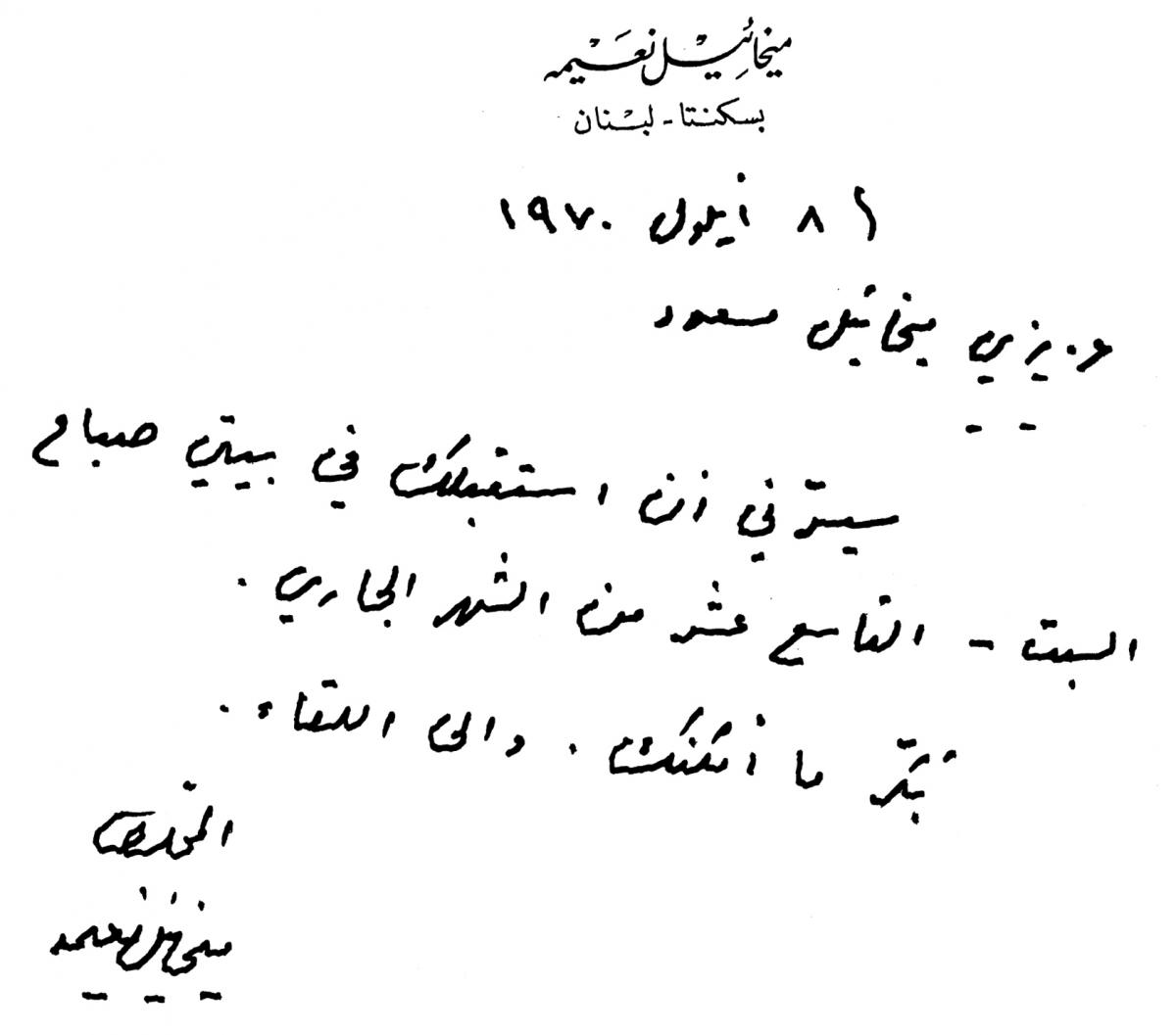 رسائل خطية من ناسك الشخروب ميخائيل نعيمة الى صديقه ميخائيل مسعود