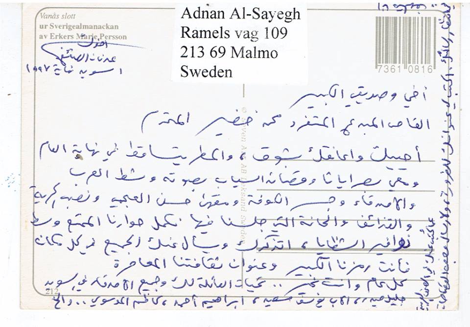أنا متلهف بانتظار رسائلك.. اكتب لي عنوانك للضرورة ، و لإرسال بعض القصاصات عما كتب عنك في الصحف العربية