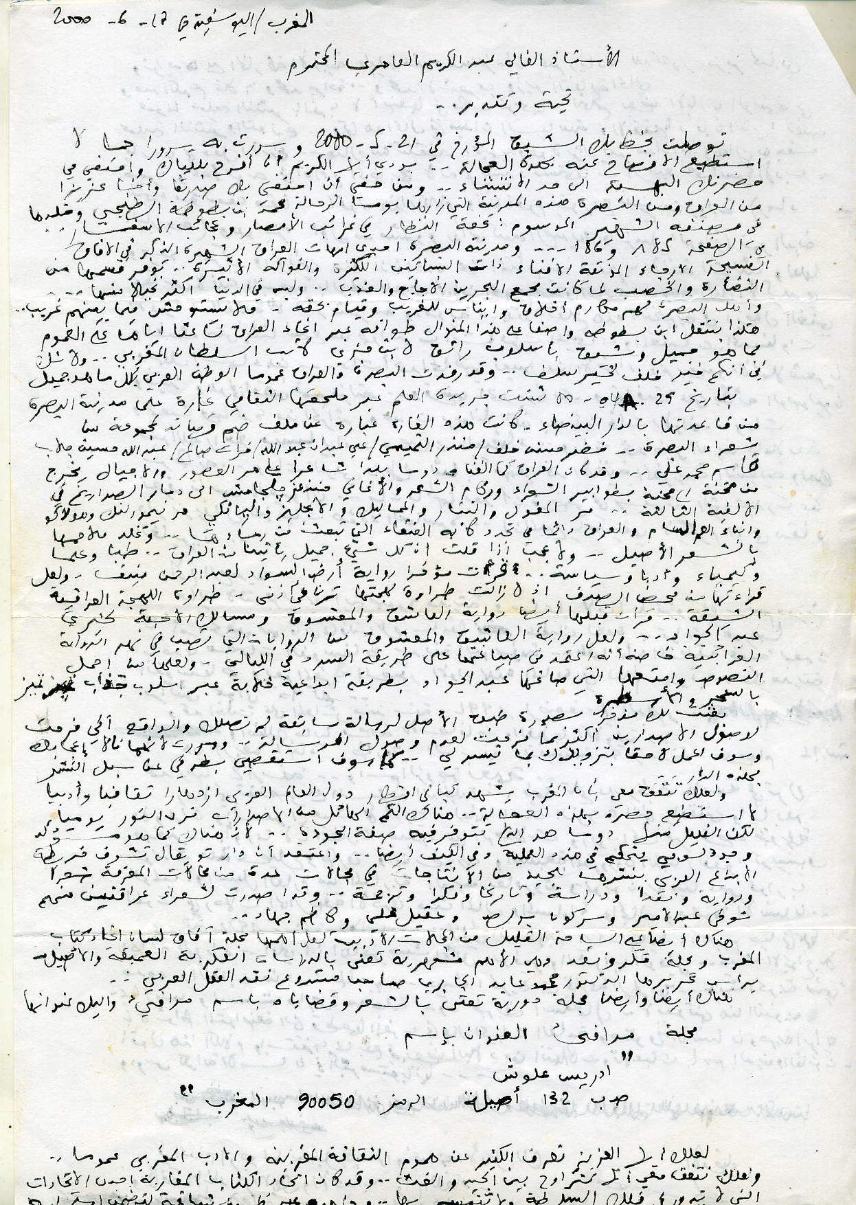 رسائل الأدباء رسالتان بين الشاعر والروائي والمسرحي العراقي عبدالكريم العامري ونقوس المهدي -2-
