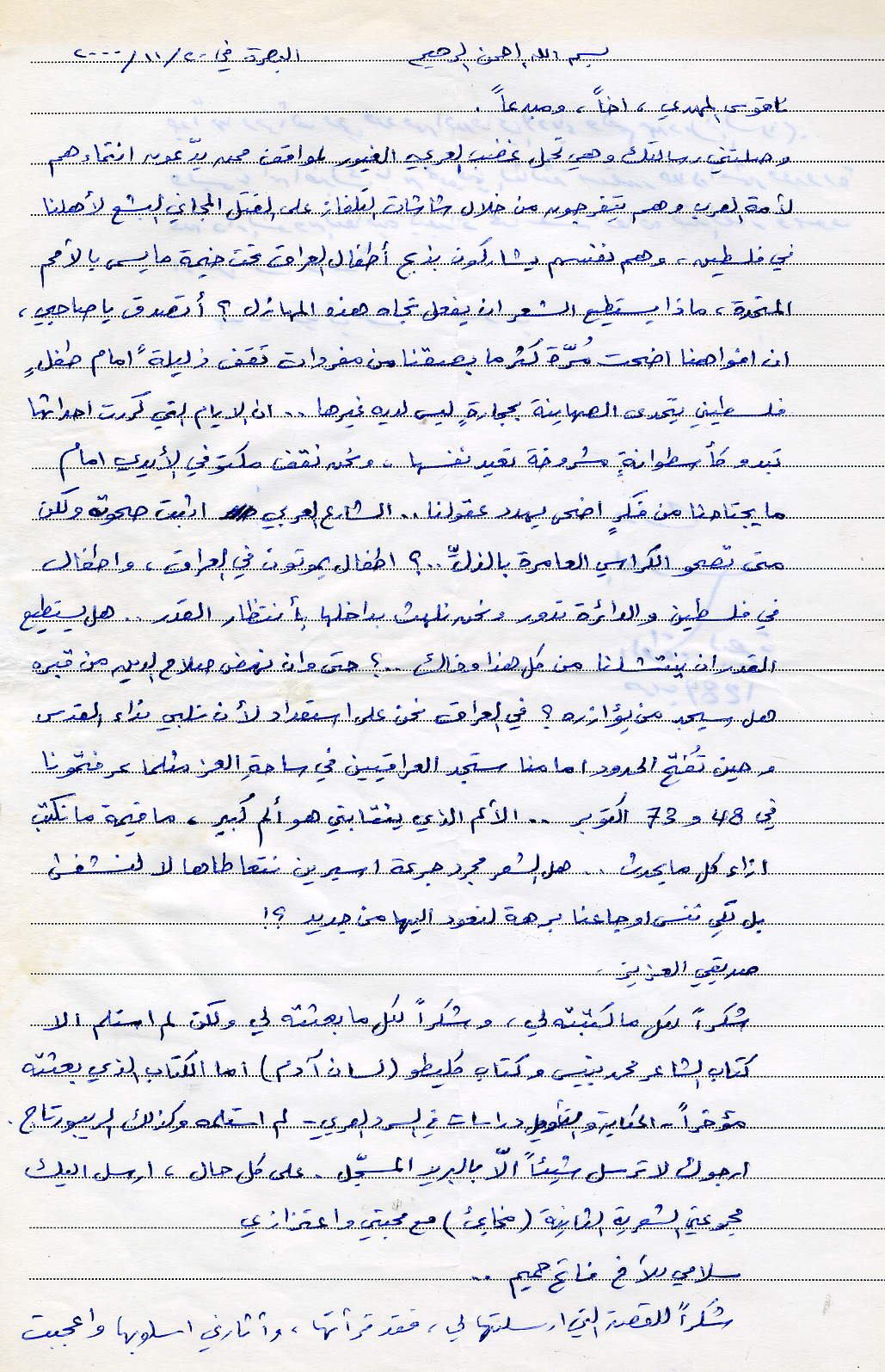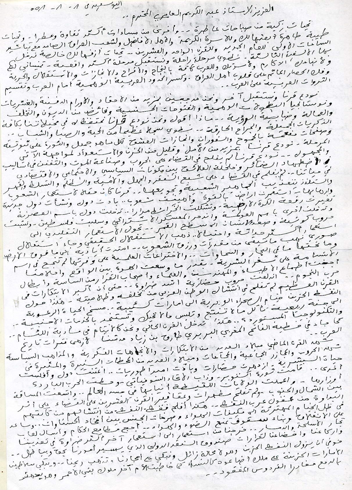 رسالتان بين الشاعر والروائي والمسرحي العراقي عبد الكريم العامري ونقوس المهدي -5-