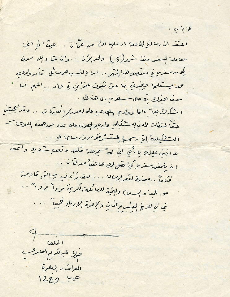 رسالتان من الشاعر والروائي والمسرحي العراقي عبدالكريم العامري إلى نقوس المهدي -10-