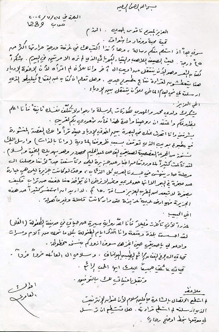 رسائل الأدباء ثلاث رسائل بين الشاعر والروائي والمسرحي العراقي عبدالكريم العامري و نقوس المهدي -12-