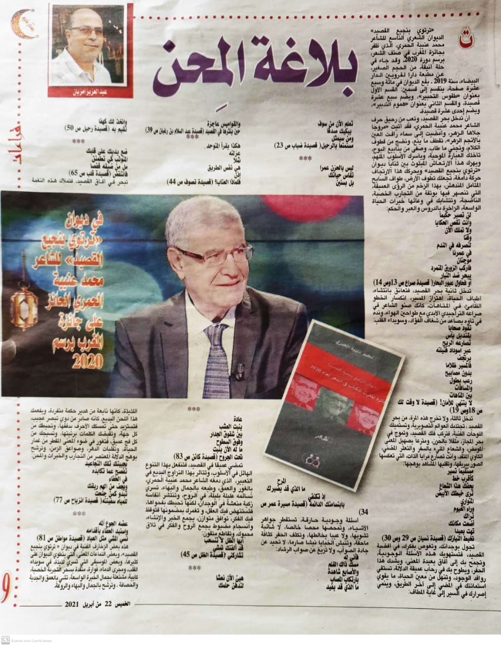 "ترتوي بنجيع القصيد" للشاعر محمد عنيبة الحمري الحائز على جائزة المغرب في صنف الشعر، برسم دورة 2020