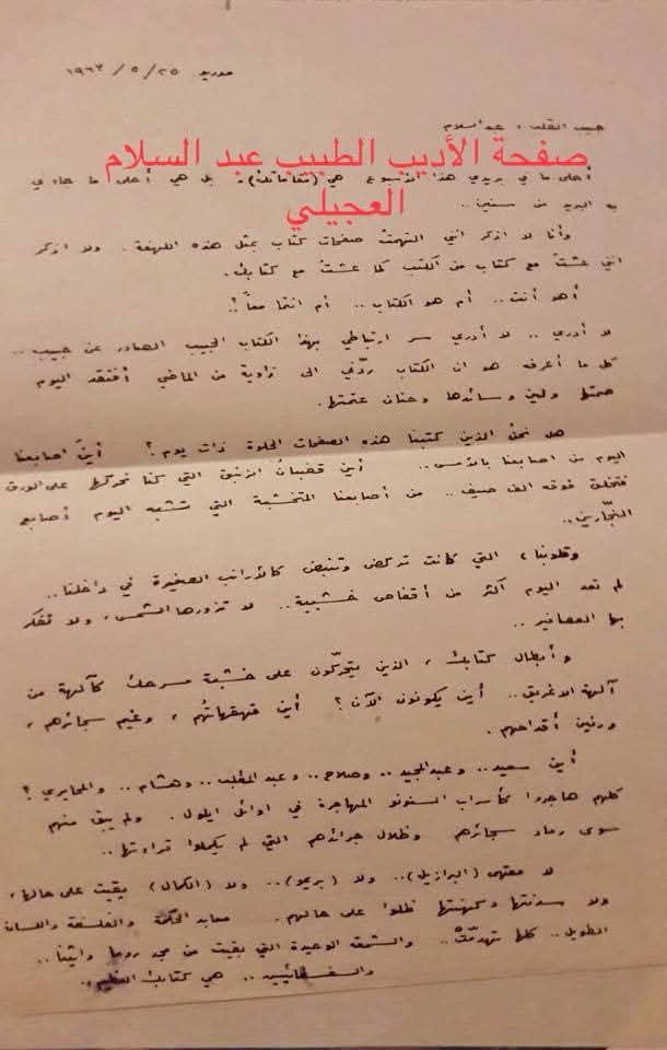 ومثلما خلد تاريخ الأدب آثار الجاحظ وموليير وبرنارد شو، سيضيف إلى قائمة الموهوبين اسماً جديداً، هو: عبد السلام العجيلي.