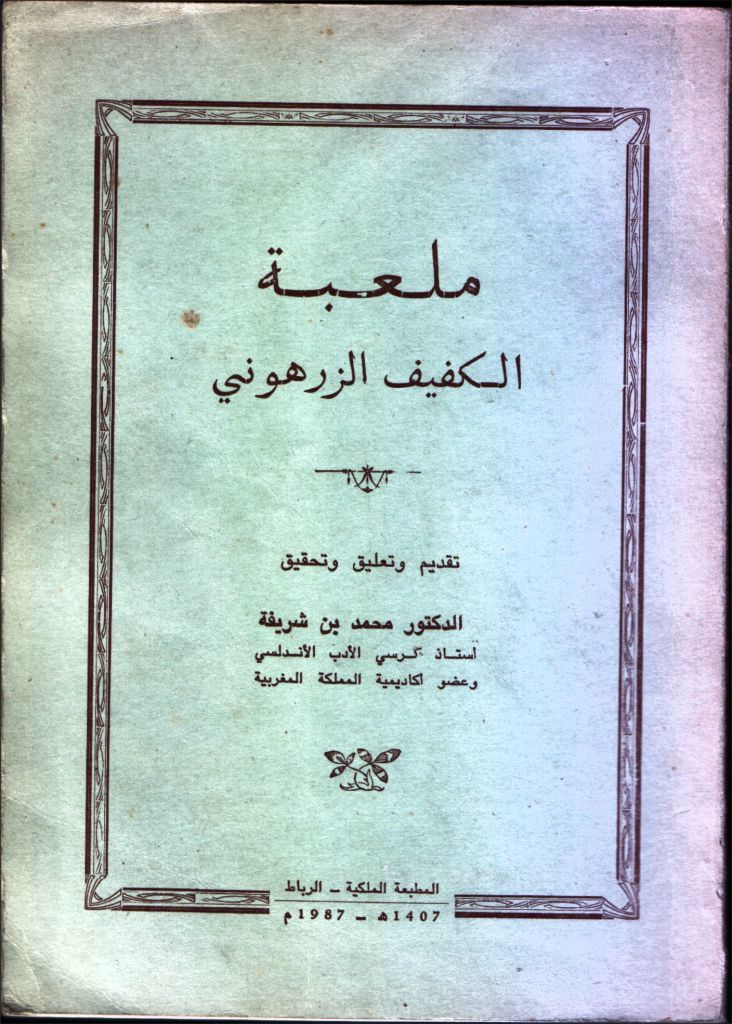 وفي مؤلفه الصادر عن المطبعة الملكية بالرباط بعنوان “ملعبة الكفيف الزرهوني”، شرح المحقق محمد بن شريفة مجموعة من كلمات “الملعبة”، ويسر استيعاب معانيها، ووثق إشاراتها التاريخية، مرفقا إياها بأصول تاريخية؛ من “العبر وديوان المبتدأ والخبر في أيام العرب والعجم والبربر ومن عاصرهم من ذوي السلطان الأكبر” لعبد الرحمن ابن خلدون، والمسند الصحيح الحسن في مآثر ومحاسن مولانا أبي الحسن لمحمد ابن مرزوق التلمساني المالكي المعروف بالحفيد، قاصدا بذلك إخراج “هذا النص الشعبي القيم من صورته الغامضة كما هي في المجموع الخطي رقم 184 بخزانة ابن يوسف بمراكش إلى هذه الصورة الواضحة (…) مقتديا بابن خلدون، شيخ المؤرخين المغاربة الذي نوه بالملعبة وصاحبها.