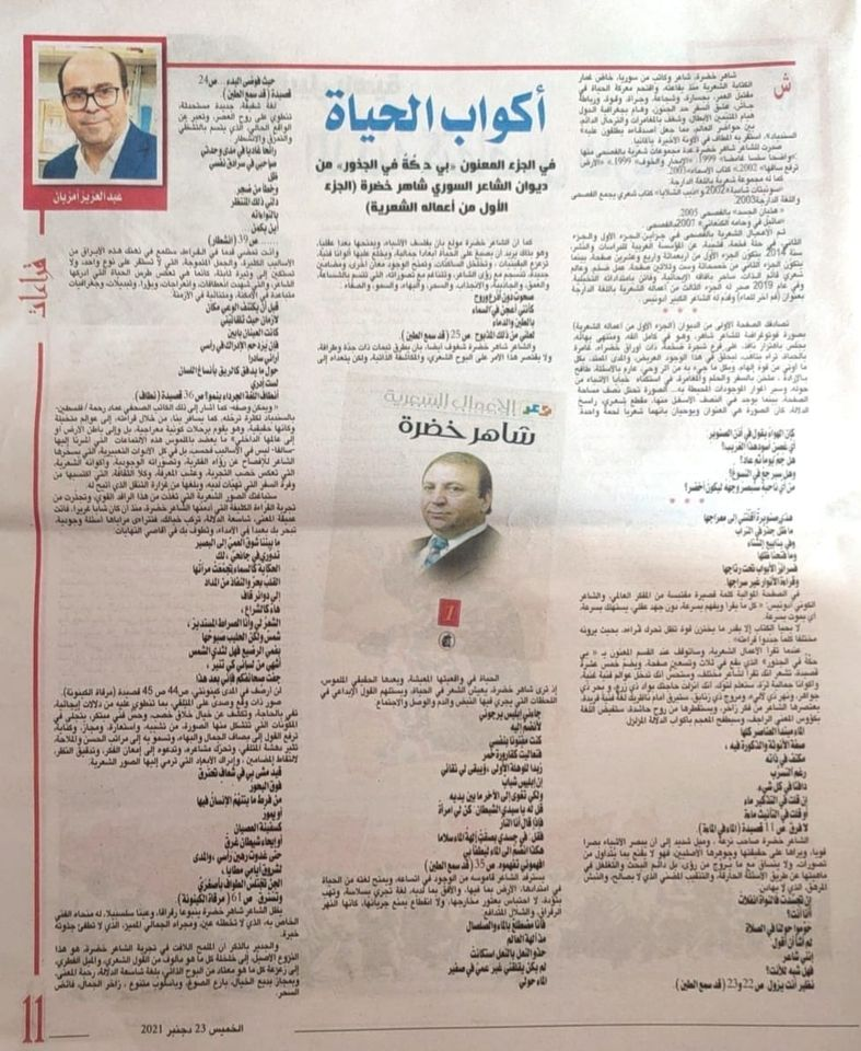 عبدالعزيز أمزيان - أكواب الحياة في القسم المعنون " بي حِكَّةٌ في الجذور" من ديوان الشاعر شاهر خضرة (الجزء الأول من أعماله الشعرية)