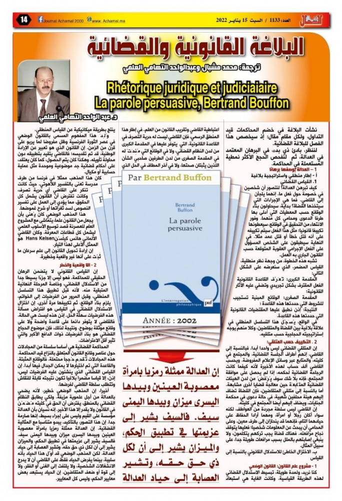 * منشورة في عدد اليوم السبت 15 يناير 2022 بجريدة الشمال الأسبوعية الورقية التي تصدر بمدينة طنجة.