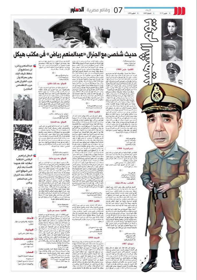 " لماذا؟ لماذا ذهب؟..والتقديرات كلها بعد معارك يوم السبت ـ أمس ـ تشير إلى أن العدو سوف يحاول فى الغد( الأحد 9 مارس) أن يثأر لخسائره " كان هذا هو السؤال الذى دار فى ذهن الكاتب الصحفى محمد حسنين هيكل - وربما فى عقل غيره من الجماهير المصرية والعربية - وهو جالس فى مكتبه بصحيفة الأهرام بعدما علم بنبأ استشهاد الفريق عبد المنعم رياض رئيس أركان حرب القوات المسلحة المصرية (من 11 يونيو/ حزيران ـ 1967 ـ وحتى 9 مارس / آذارـ 1969) على الجبهة فى أكثر المواقع تقدما بين الجنود!
