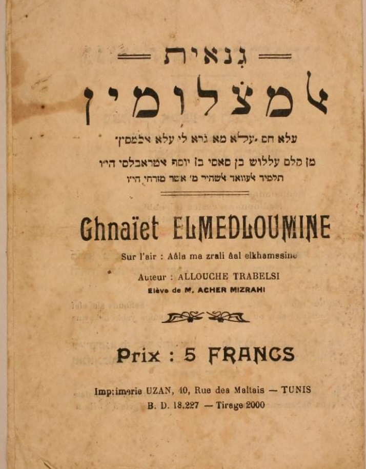كتب الطرابلسي هذه القصيدة باللهجة اليهودية العربية التونسية التي تحدث بها على أنغام أغنية عربية هي "علاء ما زرلي على الخمسين" كما يمكن قراءتها في هذه النسخة المطبوعة التي تستخدم الأحرف اللاتينية بدلاً من النص اليهودي العربي.