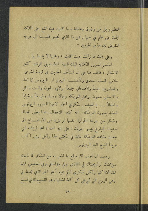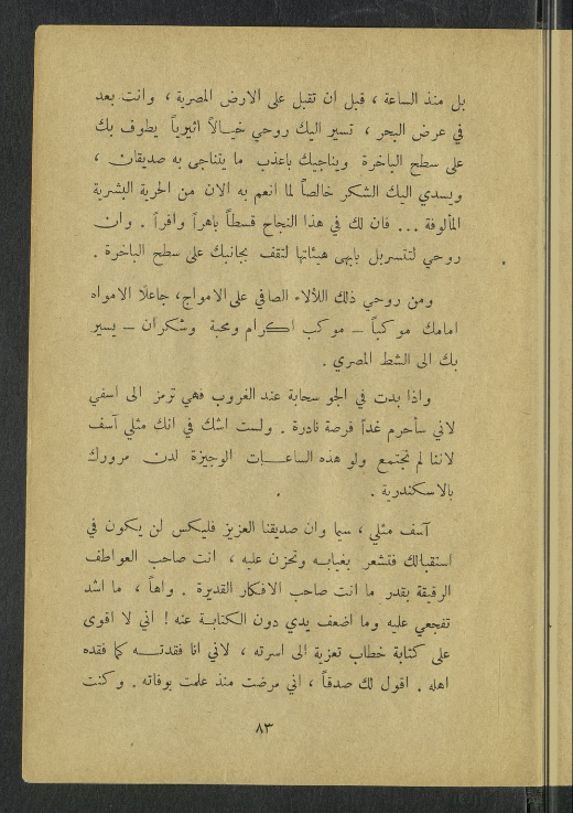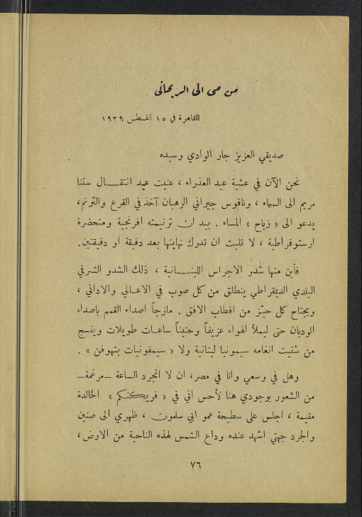 كتبت ُ إليك ِ كلمة من الباخرة يوم وصلني كتابك ِ الجميل بعواطفه ولطائفه، وأرسلتها من بيروت.