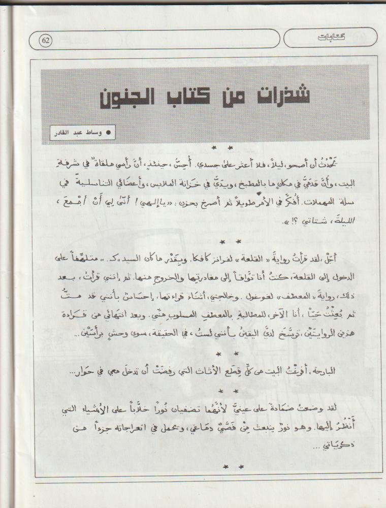عبدالقادر وساط (أبو سلمى) - شذرات من كتاب الجنون
