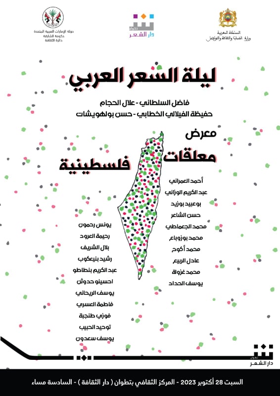 تنظم دار الشعر بتطوان "ليلة الشعر العربي"، بمشاركة الشاعر العراقي فاضل السلطاني والشعراء المغاربة علال الحجام وحفيظة الفيلالي الخطابي وحسن بولهويشات، وذلك يوم السبت 28 أكتوبر الجاري، في مسرح المركز الثقافي بتطوان (دار الثقافة)، ابتداء من السادسة مساء.