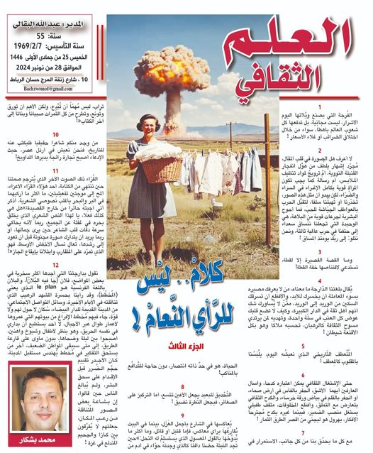 افتتاحية ملحق"العلم الثقافي" ليوم الخميس 28 نونبر 2024.