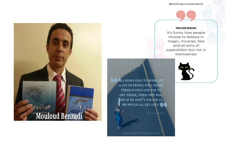 Le parcours littéraire de Mouloud Benzadi a commencé par des nouvelles et des articles, montrant sa passion précoce pour la narration. Il s’est ensuite aventuré dans l’écriture basée sur la recherche, ce qui a ouvert la voie à sa carrière de lexicographe. Son dictionnaire à succès des synonymes et homonymes arabes, s’étendant sur 600 pages, s’est vendu rapidement à 3 000 exemplaires et a connu deux éditions en quelques mois. Il a également publié un dictionnaire des verbes à particule anglais en arabe. Pendant ce temps, Benzadi s’est lancé dans l’écriture de romans, publiant des œuvres telles que Larmes et Leçons, Au-delà de l’Horizon Bleu, et Angelina : Une Fille d’Autriche. Maintenant en transition vers l’écriture en anglais, son premier roman en anglais attend un agent littéraire, avec des citations de ce travail inédit qui gagnent déjà une reconnaissance internationale dans plusieurs langues.