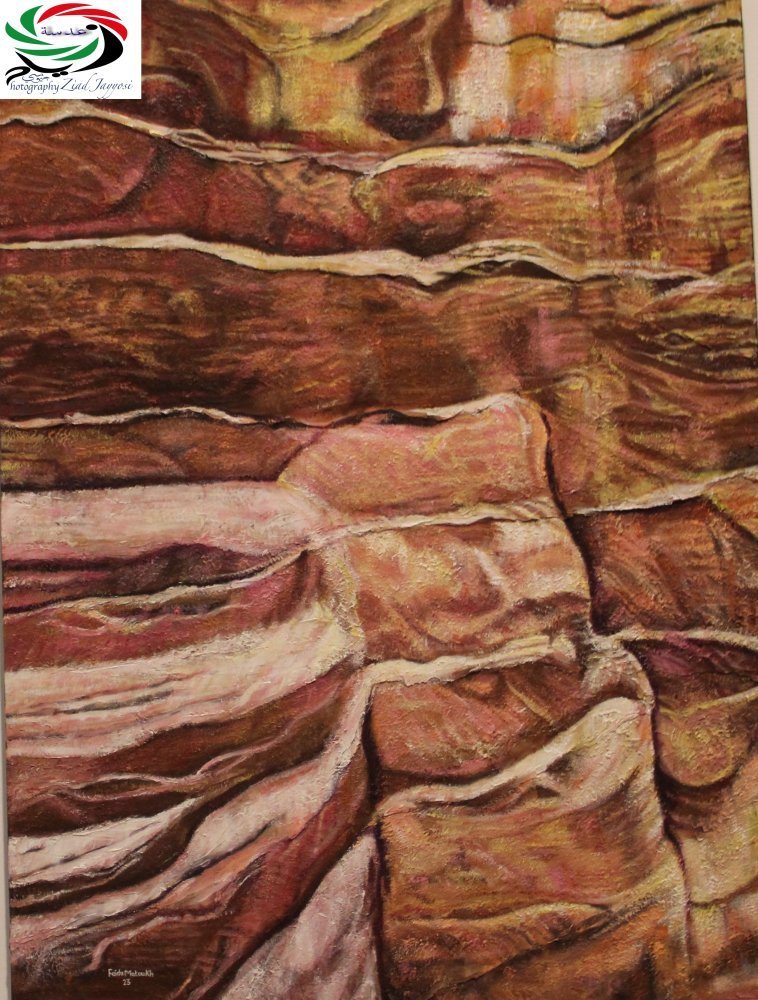 لعل عنوان المعرض التشكيلي "همهمات الصخور" للفنانة الأردنية من أصول قوقازية فاديا ماتوخ هو أول ما شدّني لحضور المعرض الذي افتُتح في قاعة زارا سنتر في عمّان مساء 2/10/2024. فقد أنسنت الفنانة الصخور، وجعلت منها كائنات حيّة تتنفس وتصدر همهمات، آخذة بيد المتأمل في اللوحات إلى رحلة خيالية بين صخور البتراء الوردية والملونة، والسيق والخزنة في إحدى وعشرين لوحة، وبين شروق وادي رم وغروبه، وأعمدة الحكمة السبعة، ونقوش الطبيعة والجبال، والنقوش الحجرية في ثماني عشرة لوحة. كنت أقف بصمت وأشعر بالصخور تلقي على مسامعي قصائد ملونة بنكهة المكان وسحره، فلكل مكان طعم وملمس وعبق خاص، وبين صخور البتراء وسحر وادي رم وجدت نفسي كفراشة هائمة بين وردتين، تستحضر ذاكرتي شريطًا من الزيارات والجولات السابقة لهذين المكانين، ومئات اللقطات التي وثّقتها عدستي لسحرهم.