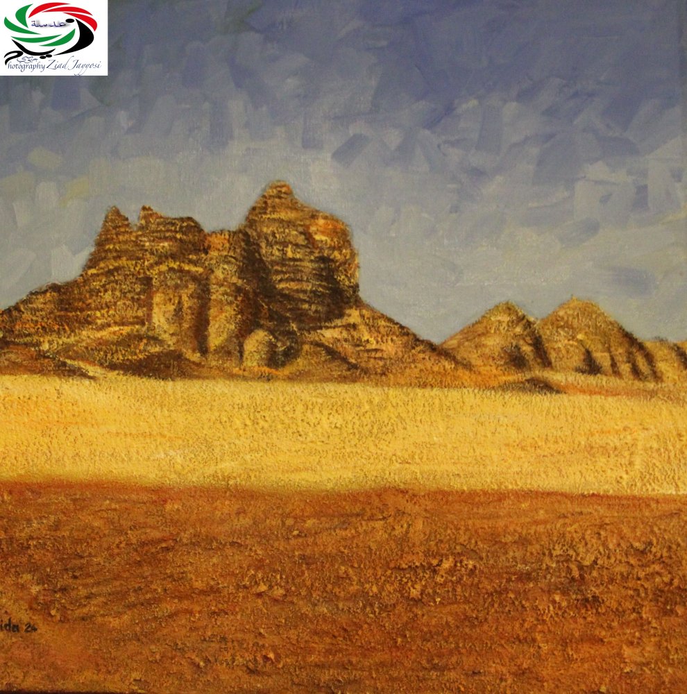 في نهاية استماعي بشغف لهمهمات الصخور في البتراء ووادي رم، رأيت أن الفنانة تأملت هذه المناطق بعين المبدع لا بعين العابر، في لوحات خرجت عن المألوف، فمزجت الحصى والرمال مع اللون، فجاءت لوحاتها بارزة وخشنة الملمس كطبيعة المكان، وبدون أي انسيالات أو عيوب لونية، محافظة على انسجام الشكل والموضوع. دمجت بين الواقعية والتجريد، وبين الألوان الدافئة والمحايدة والباردة، محافظة على هوية الأمكنة. وجعلت خلفيات اللوحات أبعادًا جمالية خاصة، تتناغم مع البتراء وطبيعة وادي رم.