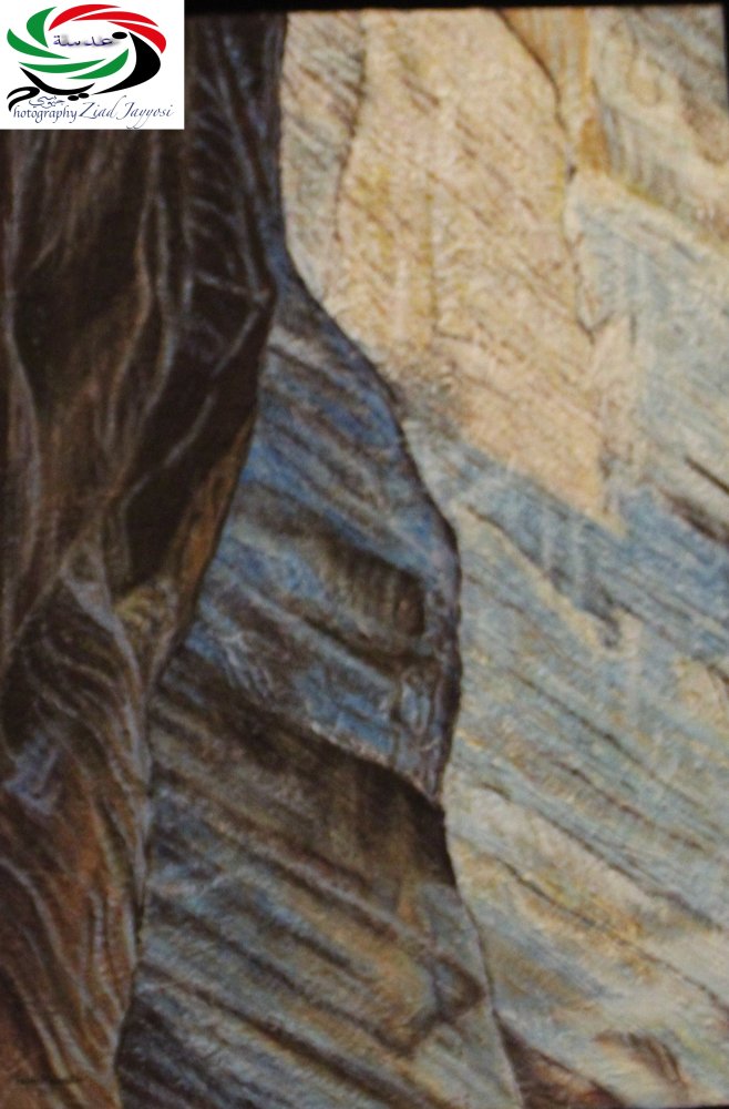 كان المحور الأول في المعرض مخصصًا للبتراء، حيث ركزت الفنانة على أربعة محاور أساسية. خصصت اثنتي عشرة لوحة لصخور البتراء الملونة، التقطت فيها بعينها الفنية جمالية الصخور التي هي بحق إبداعات الخالق في الطبيعة، وحوّلتها من صخور صمّاء إلى لوحات فنية نابضة، تكشف جماليات قد تمرّ على كثير من الزائرين دون انتباه خاص. بعضهم يكتفي بالإعجاب العابر، وقليلون هم من يلتقطون هذا الجمال ويحيلونه إلى فن خالد، سواء عبر الريشة أو عدسة التصوير. والفنانة هنا لم تكتفِ بنقل جمال الصخور بالألوان، بل مزجت في العديد من اللوحات حصى ورمال هذه الصخور، فجاءت اللوحات نافرة الملمس، أقرب إلى القلب، وكأننا نستمع فعلاً لهمهمات الصخور.