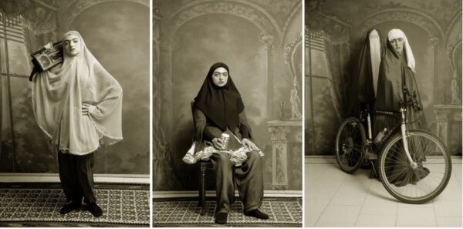 دعونا نذكر أيضًا شيرين نشأت (مواليد 1957، تعيش في المنفى في الولايات المتحدة الأمريكية). في عام 1974، ذهبت شيرين نشأت إلى الولايات المتحدة لدراسة الفن. في عام ١٩٩٠، لدى عودتها إلى إيران، تأثرت شيرين نشأت بشدة بتأثير الثورة الإسلامية عام ١٩٧٩ على وضع المرأة. بدأت مسيرتها الفنية بإنشاء سلسلتين فوتوغرافيتين: "كشف الحجاب dévoilement " عام ١٩٩٣، و"نساء الله Women of Allah " عام ١٩٩٤. في صورها الشخصية، ترتدي جميع النساء الشادور. وتُغطي نصوص غامضة مكتوبة بالخط الفارسي، مرسومة مباشرة على الصور، الأجزاء الظاهرة من أجساد هؤلاء النساء المحجبات.