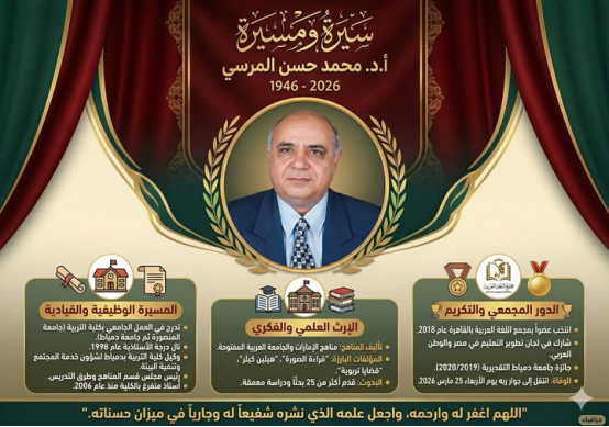 ودعت الساحة التربوية والأكاديمية واللغوية عضو مجمع اللغة العربية الدكتور محمد حسن المرسي إبراهيم(1946م -2026م)